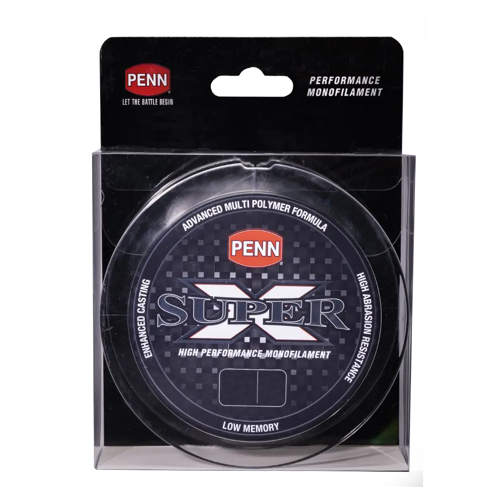 Penn Super X Monofilament line is a super strong multi-polymer formula with high abrasion resistance for peace of mind and low memory for excellent manageability. Available in low vis green Super X mono is an excellent all round line for bait anglers.
